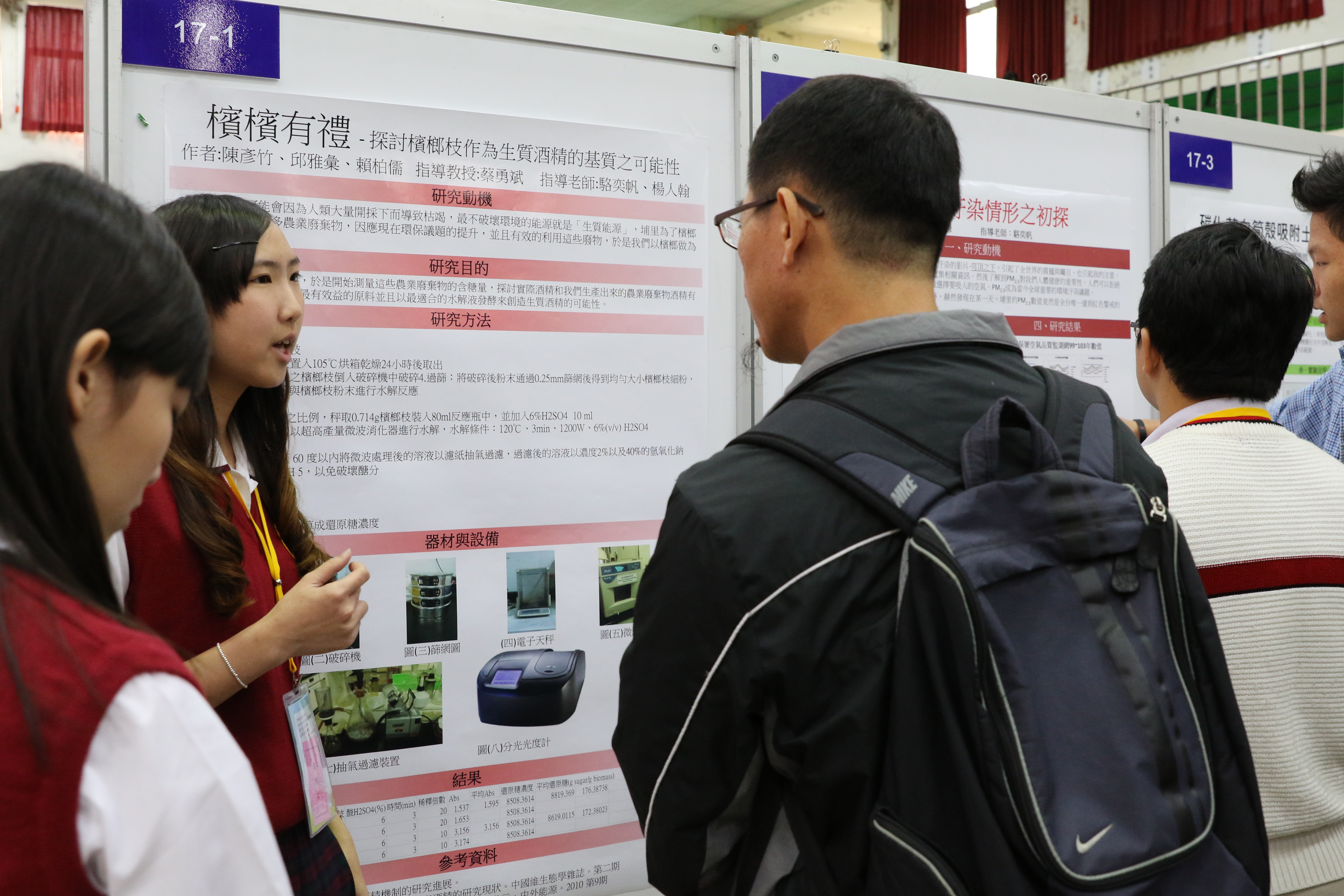特優 | 1 | 檳檳有禮—探討檳榔枝產生質酒精的可能性 | 賴柏儒、陳彥竹、邱雅彙 | 駱奕帆、楊人翰 |